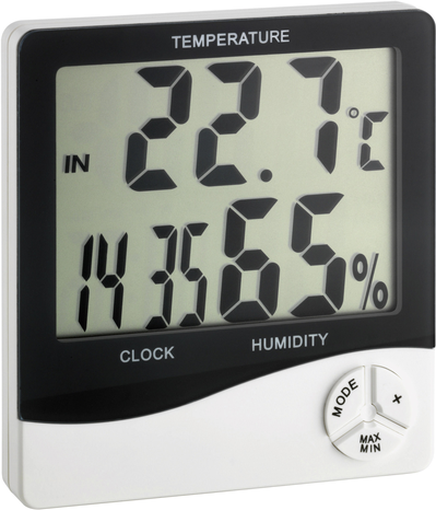 TFA-Dostmann WS 5031 - Thermo-Hygrometer mit Uhrzeitanzeige Indoor Elektronisches Hygrometer Schwarz - Weiß (30-5031)