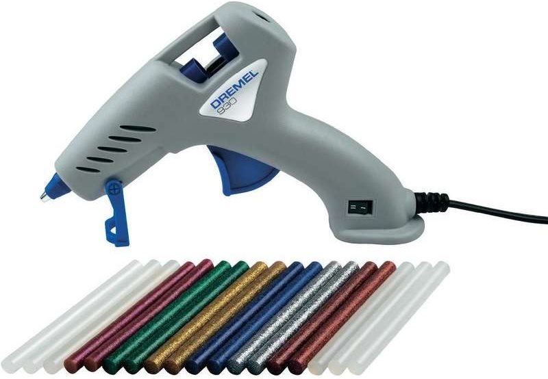 Der Dremel 930 ist eine Klebepistole mit zwei Temperaturstufen speziell für Detailklebearbeiten. Die niedrige Temperatur ist optimal für kreative Hobbyanwendungen wie die Gestaltung von Fotoalben, Dekorieren, Farbklebearbeiten auf Glas usw. Mit den beigefügten 7 mm Glitter-Klebestiften können Sie Ihre Objekte zum Glänzen bringen und wunderschöne Dekorationen schaffen. Für einfache Heimwerkerarbeiten im Haus wie das Kleben von Keramik, Holz, Kunststoff und Glas verwenden Sie die hohe Temperatureinstellung. Die Präzisionsspitze mit Tropfschutz vermeidet Klebstoffreste an Ihrem Projekt.