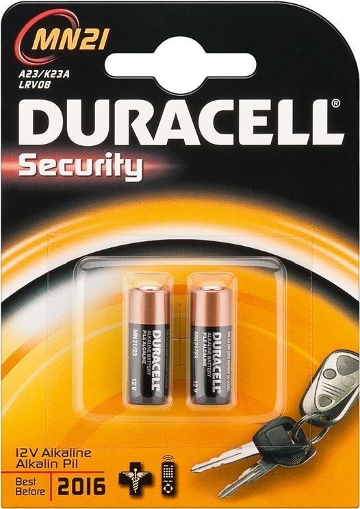 Duracell Batterie für Schließanlagen und Fernbedienungen, MN21, VE: 2 Stück Kompatibel mit V23GA, A23, LRV08, R23A-1W, K23A (203969)