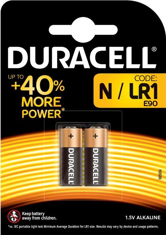 Duracell Batterie für Schließanlagen und Fernbedienungen, N (MN9100), VE: 2 Stück Kompatibel mit LR1, 4001, E90, RN-2, LR1(N), KN (203983)