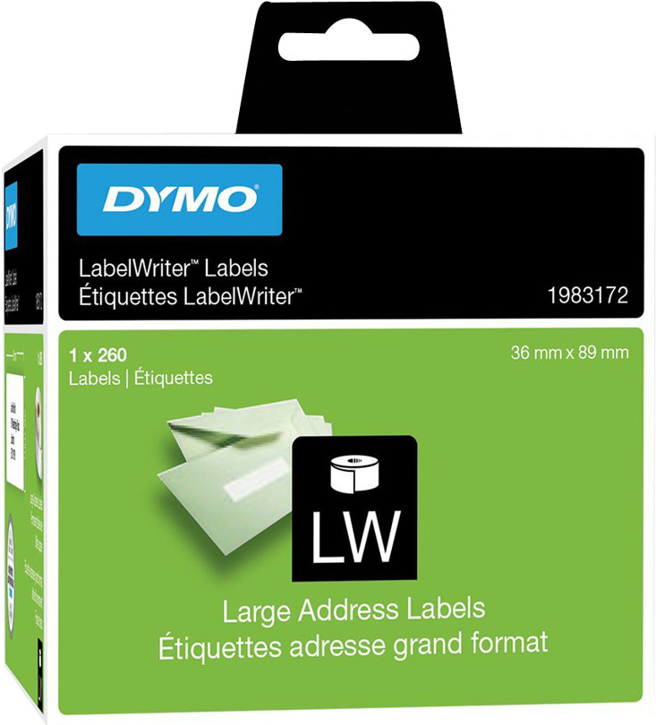 Dymo LabelWriter Large - Selbstklebende Adressenetiketten - weiß - 89 x 36 mm 260 Etikett(en) (1 Rolle(n) x 260) (1983172)
