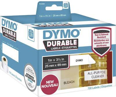 Bei schwierigen Oberflächen nehmen Sie am besten gleich ein Etikett, das robuster und langlebiger ist als ein Papieretikett. DYMO LabelWriter Hochleistungs-Etiketten verfügen über Industrieklebstoff und eine strapazierfähige Beschichtung, die Abblättern und Abrieb durch Wärme, Feuchtigkeit und Lösungsmitteln standhalten. Dymo LW Durable-Etiketten sind ideal für Regale, Bodenmarkierungen, Chemikalienlager und mehr.