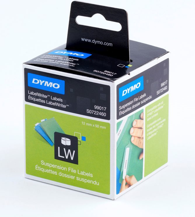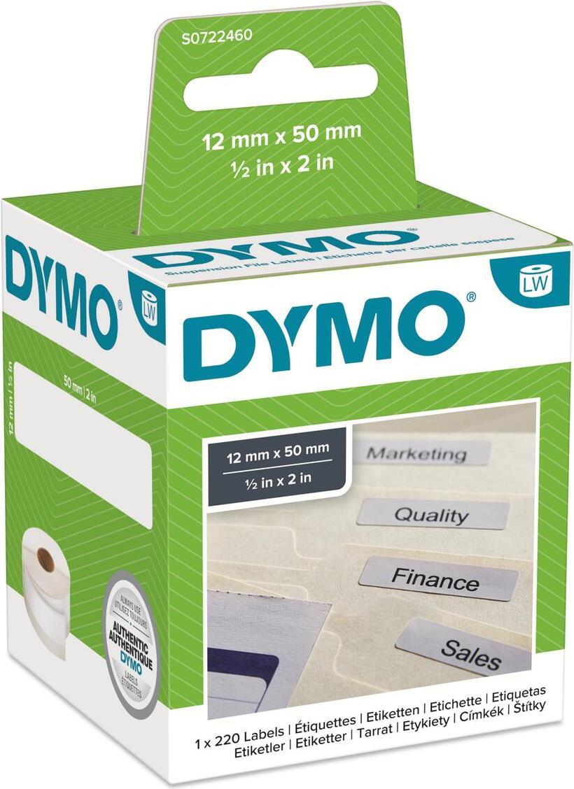 Dymo LW Labels für Suspension - LabelWriter Dymo Etiketten für Hängeablagen, 12 mm x 50 mm, weiß, permanent klebend, 220 Etiketten, für LW 310, 320, 330 (99017)