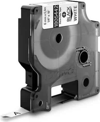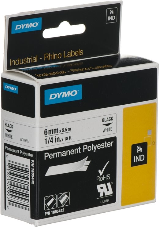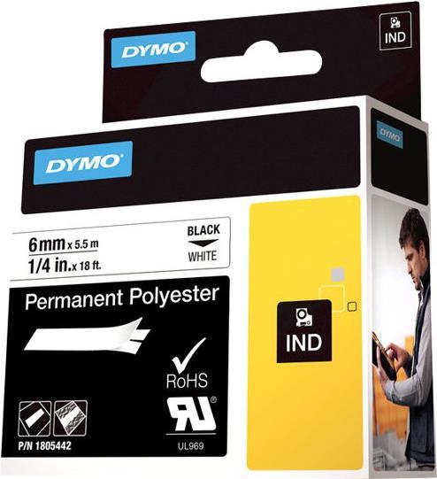 Dymo strapazierfähiges Polyesterband 1805442 für Rhino Etikettendrucker, 6 mm x 5,5 m, weiß Ideal für gerade Oberflächen, Geräte, Behälter, Schalttafeln usw. (1805442)