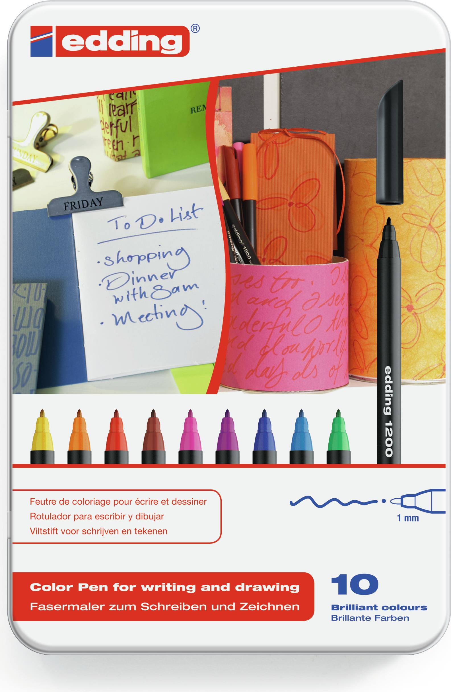 Edding 1200 colourpen - Bußgeld - Rundspitze - Mehrfarben - Rund - Schwarz - Blau - Braun - Grün - Orange - Pink - Violett - Rot - Gelb - Tinte auf Wasserbasis (4-1200-10)