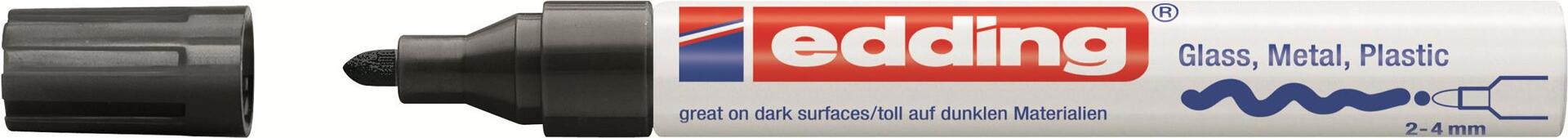 Der Paint-Marker Edding ist geeignet für Glas, Metall und Kunststoff.