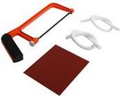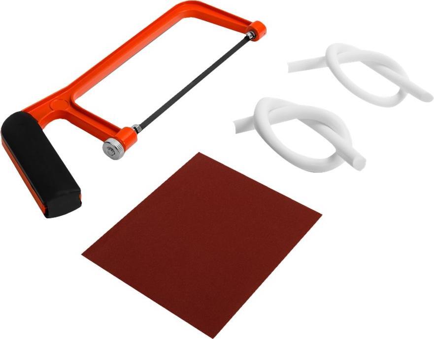 Schleifpapier (P220-Körnung, 230 mm x 280 mm), Silikonkabel (33 cm, Durchmesser 9,4 mm), Silikonkabel (33 cm, Durchmesser 11.7 mm), Metallsäge |