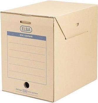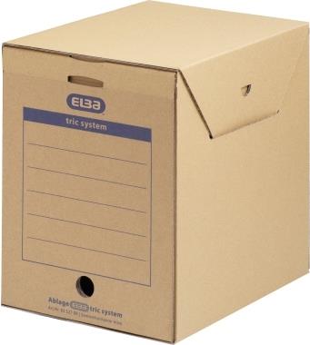 ELBA Archiv-Schachtel maxi tric System, naturbraun aus stabiler Wellpappe, mit Verschlusslasche / Greifloch / Archivaufdruck, allseitig geschlossen, für Ordnerfüllungen / Papier aller Art, Maße: (B)236 x (T)333 x (H)308 ...