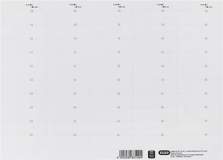 ELBA Beschriftungsschild für Sichtreiter, 4-zeilig, weiß - für den Markt: D - L - A - CH - 10 Bögen à 50 Schildchen (83582 WE)