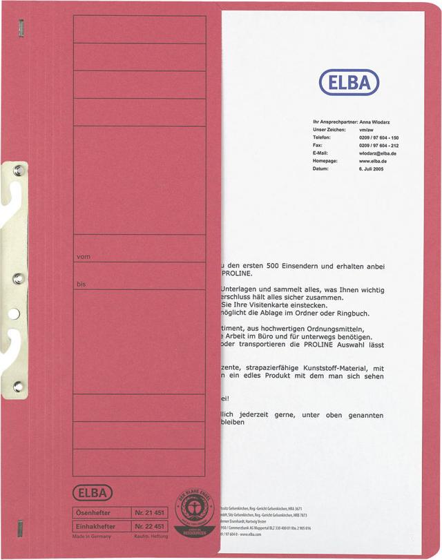 • ELBA Einhakhefter aus Karton, rot, kaufmännische Heftung halber Vorderdeckel, gepackt zu 50 Stück - 50 Stück (22451 RO)