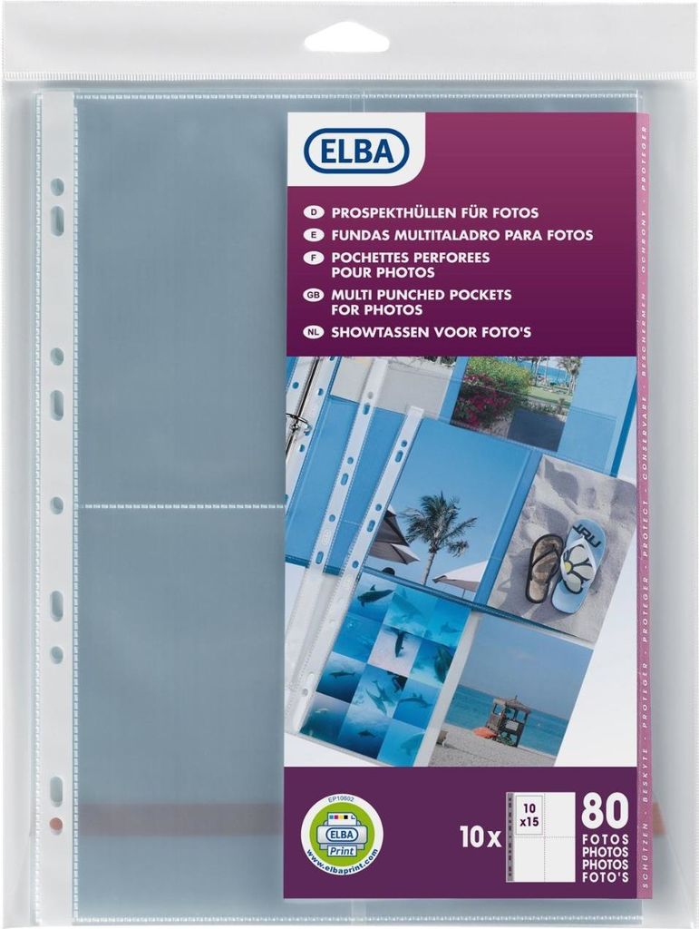 ELBA Fotohüllen für 8 Fotos 100 x 150 mm, Format: DIN A4 aus PP 0,8 mm, Universallochung, schützt die Bilder (01972081)
