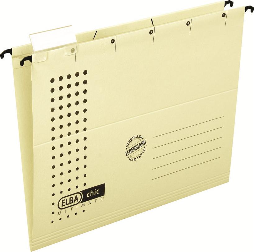 ELBA Hängemappe chic ULTIMATE, DIN A4, chamois seitlich offen, aus extrem widerstandsfähigem Canson- Karton, 240 g/qm, inkl. Sichtreiter und Schildchen, mit Organisationsaufdruck, Maße: (B)318 x (T)6 x (H)240 mm gepackt zu 25 Stück (85740 CH)