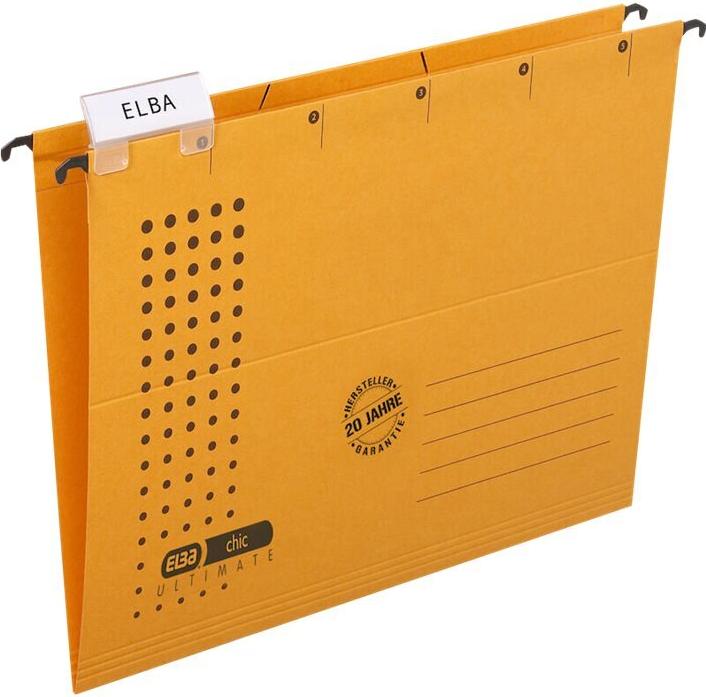 ELBA Hängemappe chic, seitlich offen, A4, gelb -------------- für den Markt: D / L / A / CH --------------- Karton, 230 g/qm, inkl. Sichtreiter und Schildchen, Schlitzstanzung, Maße: (B)318 x (T)6 x (H)240 mm gepackt zu 25 Stück (85740 GB)