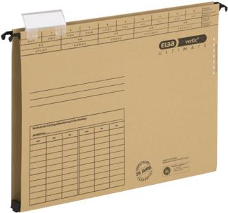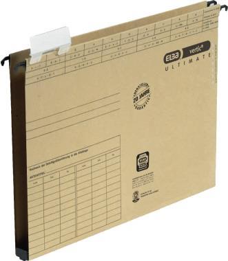 ELBA Hängesammler vertic ULTIMATE, Kunststoffboden, 20 mm aus extrem widerstandsfähigem Canson-Karton, 240 g/qm, DIN A4, Farbe: natron, mit Organisationsaufdruck und Schlitzstanzung, inkl. Sichtreiter und Schildchen, Maße: (B)318 x (H)240 mm