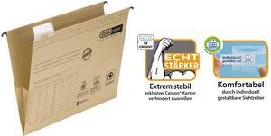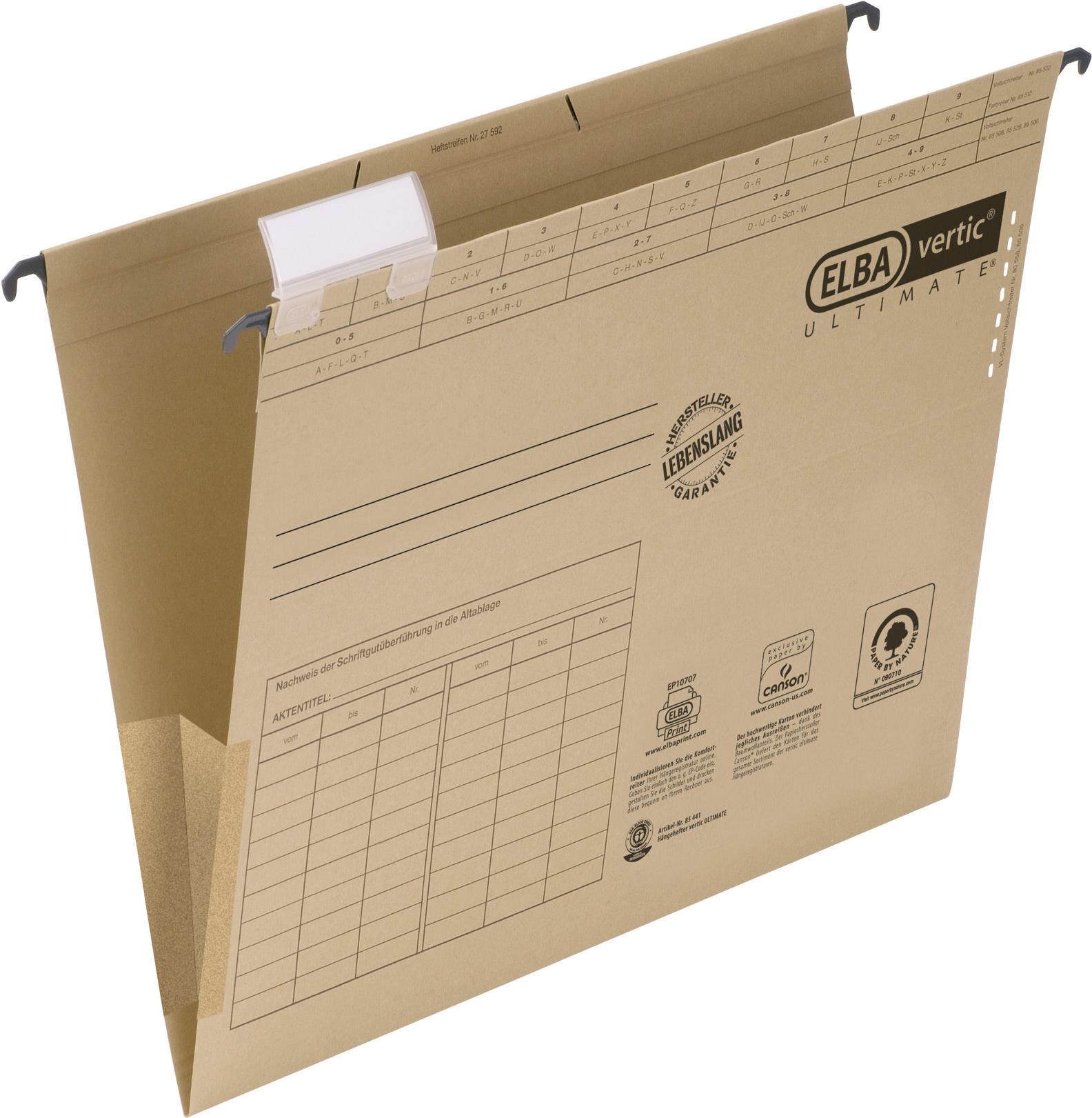 ELBA Hängetasche vertic ULTIMATE, A4, seitlich geschlossen -------------- für den Markt: D / L / A / CH --------------- aus extrem widerstandsfähigem Canson-Karton, 240 g/qm, seitlich geschlossen mit Leinenfröschen, mit Organisations- aufdruck und Schlitzstanzung, inkl. Sichtreiter und Schild- chen, (B)318 x (T)6 x (H)240 mm, gepackt zu 25 Stück (85443)