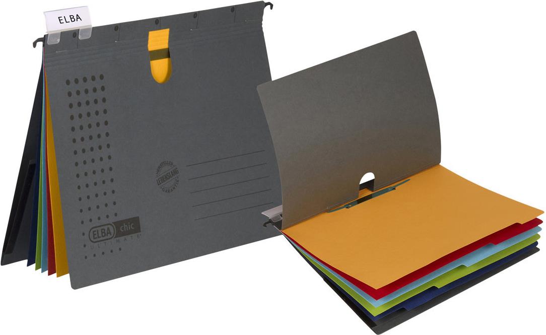 ELBA Organisationshefter chic ULTIMATE, DIN A4, anthrazit/f Hängehefter mit 5 kaufmännischen Heftungen auf 5 farbigen - 3 Stück (100333017)