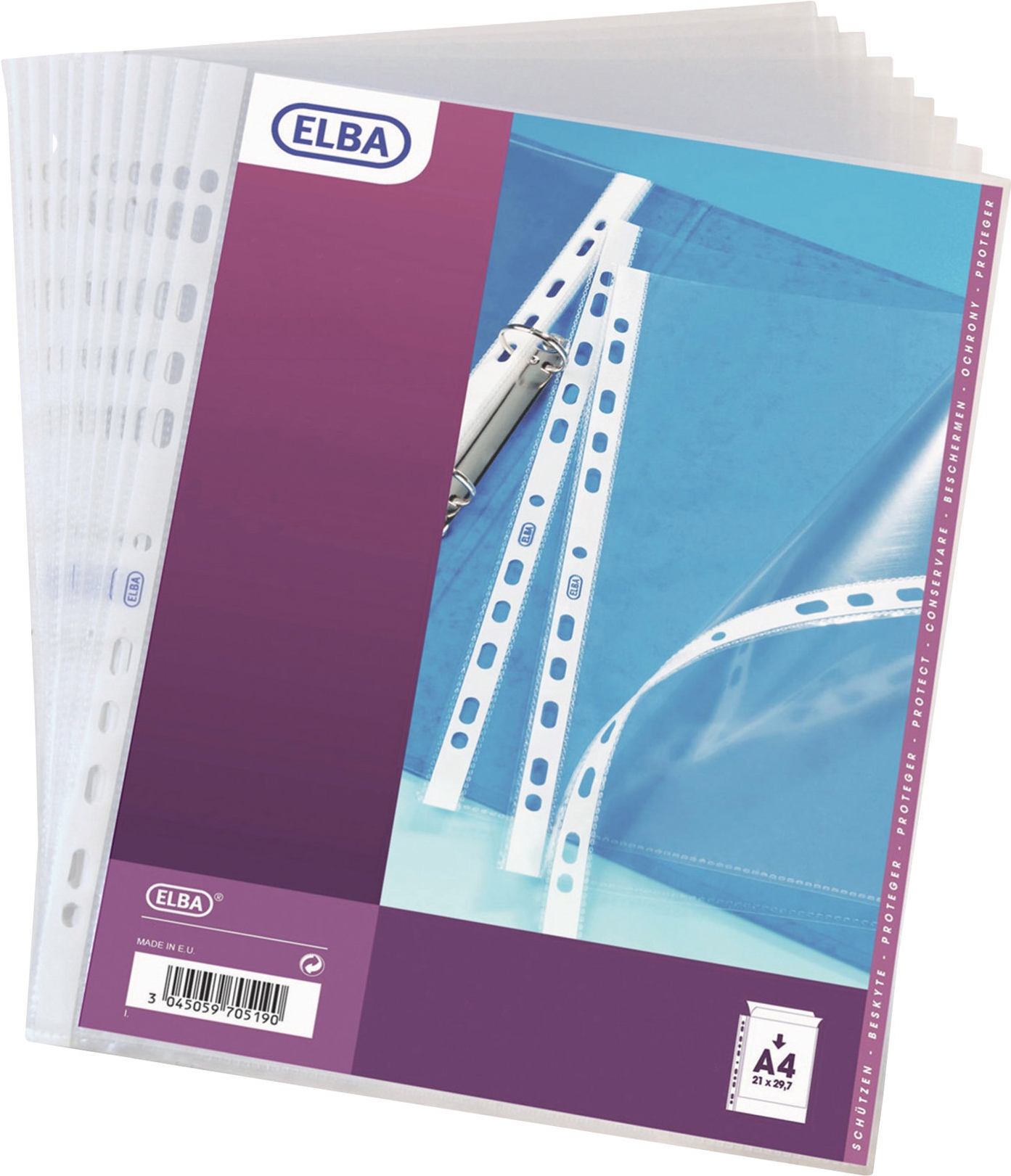 ELBA Prospekthülle Standard, DIN A4, PP, 0,09 mm, glasklar oben offen, Eurolochung, dokumentenecht, OHP geeignet, Maße: (B)230 x (H)304 mm Inhalt: 100 Stück (71461)