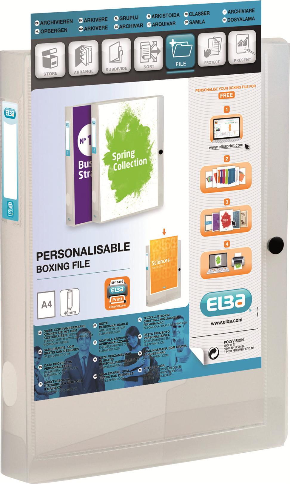 ELBA Sammelbox POLYVISION, A4, PP, Füllhöhe: 40 mm, farblos transparente Sichttasche auf dem Vorderdeckel, transparent (994034 FL)