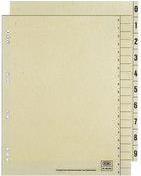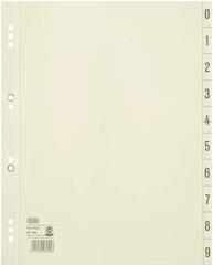 ELBA Trennblätter, 2-seitig bedruckt, chamois, 240 x 300 mm aus Kraftkarton, 200 g/qm, mit Lochrandverstärkung zweiseitiger Druck: Ziffern 0-9 und Tabfelder 10/20 Lochung: 60 und 80 mm, 80 mm Lochung geöst Maße: (B)240 ...