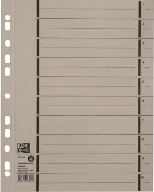 ELBA Trennblätter mit Perforation, DIN A4 Überbreite, grau aus Manilakarton, 250 g-qm, schwarzer Linienaufdruck 1-10 (06456 GR)