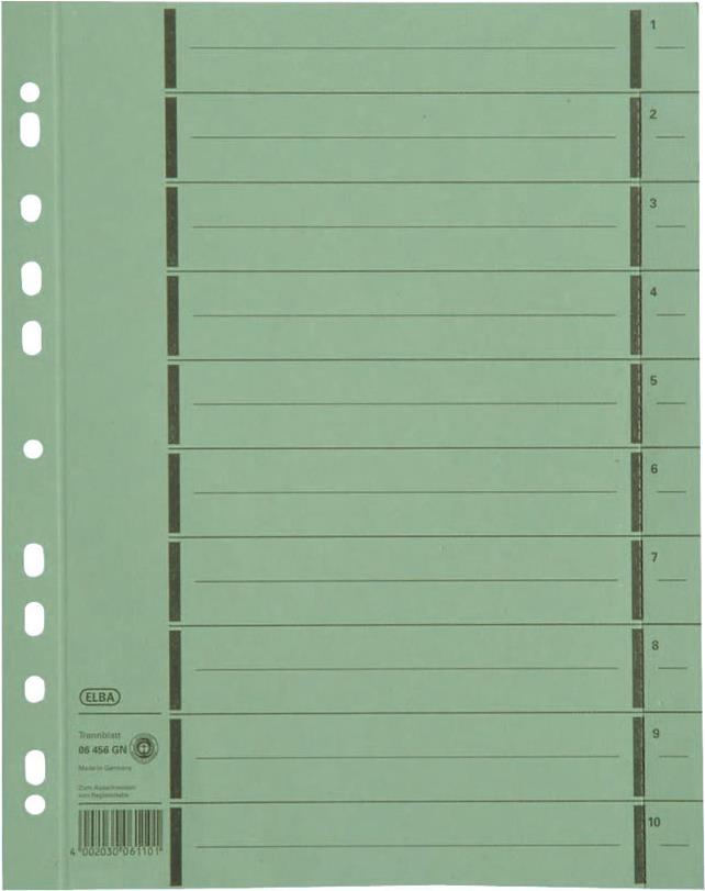 • ELBA Trennblätter mit Perforation, DIN A4 Überbreite, grau aus Manilakarton, 250 g-qm, schwarzer Linienaufdruck 1-10 (06456 GR)