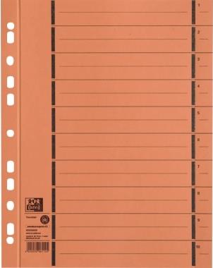 ELBA Trennblätter mit Perforation, DIN A4 Überbreite, orange aus Manilakarton, 250 g/qm, schwarzer Linienaufdruck 1-10 Register-Taben perforiert, Eurolochung Maße: (B)240 x (H)300 mm Inhalt: 100 Stück (06456 OG)