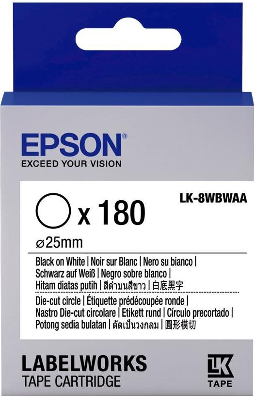 Epson LabelWorks LK-8WBWAA - Schwarz auf Weiß - 25 mm rund 180 Etikett(en) (1 Rolle(n) x 180 gestanzte, runde Etiketten - für LabelWorks LW-1000, LW-300, LW-400, LW-600, LW-700, LW-900, LW-Z5000, LW-Z5010, LW-Z900 (C53S658901)