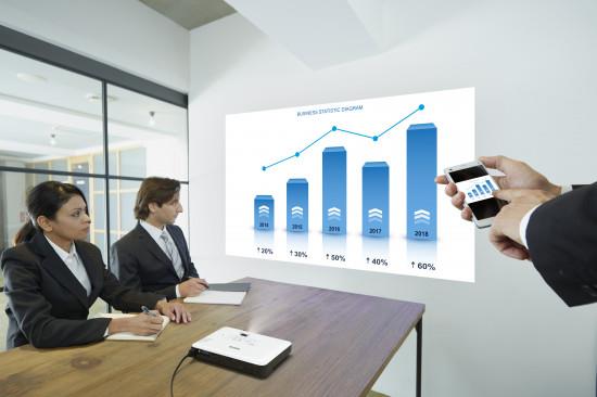 Gerade Mitarbeiter, die ständig unterwegs sind und häufig Vorträge beim Kunden halten, können dank seines geringen Gewichts, der außergewöhnlichen Bildqualität und der professionellen Funktionen von diesem praktischen Projektor profitieren. Mit kabelgebundenen und kabellosen Anschlussmöglichkeiten, einer kinderleichten Installation und den vielen modernen Funktionen ist dieser Projektor der perfekte Präsentationspartner.