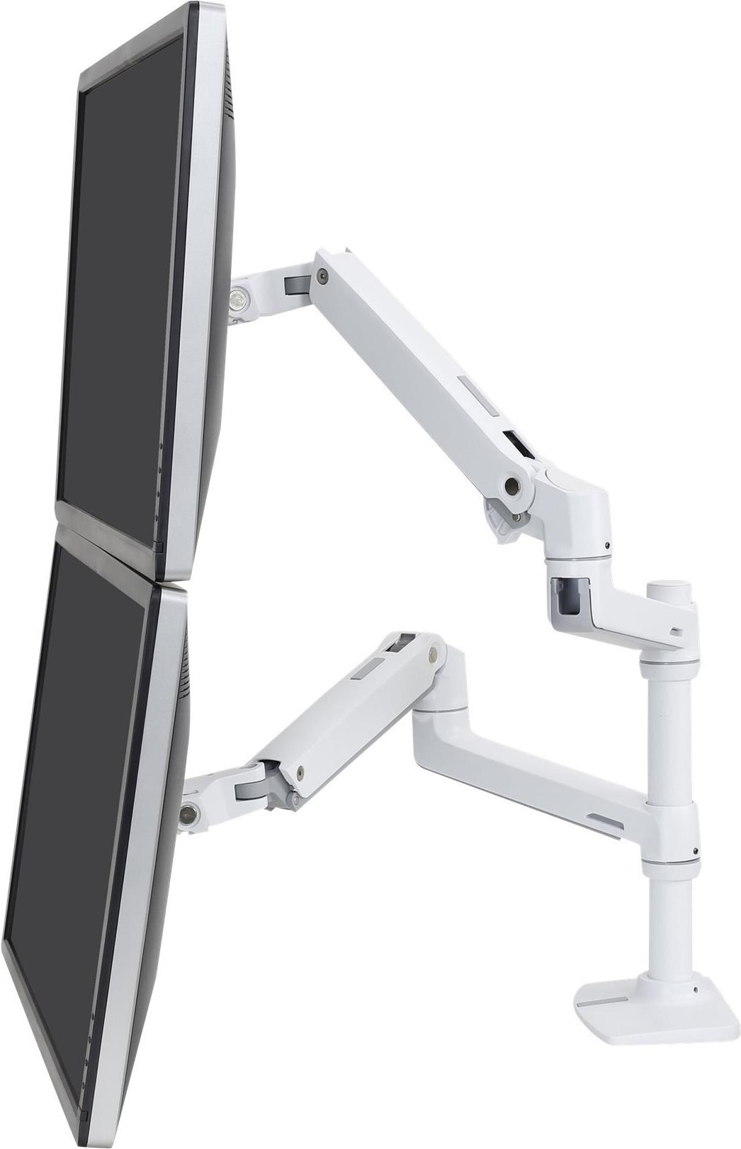 ERGOTRON LX Dual Monitor Arm in Weiß - Monitor Tischhalterung mit patentierter CF-Technologie für 2 Bildschirme bis 61,00cm (24") , 33cm Höhenverstellung, VESA Standard und (45-492-216)