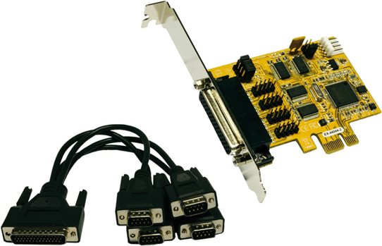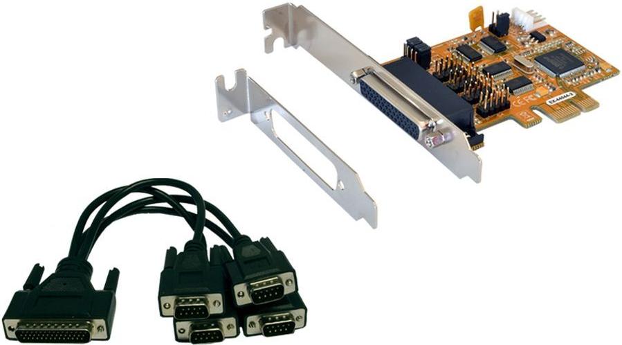 PCI-Express 4S Seriell RS-232 Karte mit 4 x FIFO 16C550, (MosChip Chip-Set) Windows WHQL zertifiziert, Octopus Kabe.