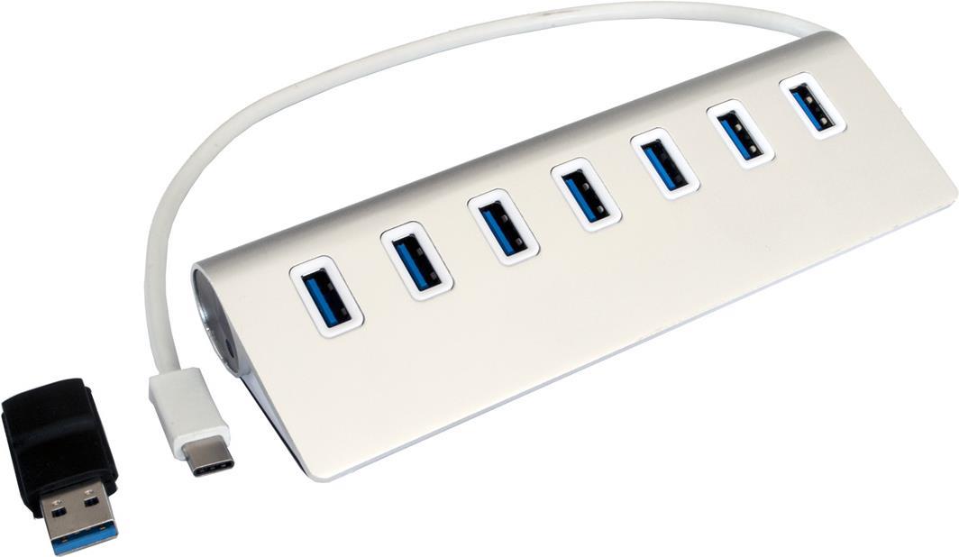 Mit der EX-1137 erweitern Sie einen USB 3.0 Ausgang von Notebook oder Desktop Rechner auf 7 weitere USB 3.0 Ports. Es ist dann möglich bis zu sieben externen USB 2.0 oder 3.0 Peripheriegeräte an einen USB 2.0 oder 3.0 Port von Notebooks oder Desktop Rechner anzuschließen. Er ist sehr kompakt und elegant und alle sieben USB Ports sind immer erreichbar. Mit der EX-1137 wird noch ein Adapter von C-Buchse auf A-Stecker (EX-47991) mitgeliefert. Somit kann der EX-1137 auch an Rechner mit A-Buchse angeschlossen werden. Das USB 3.0 Kabel ist nur 30cm lang.