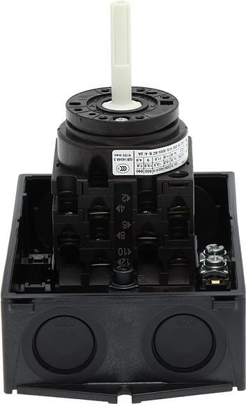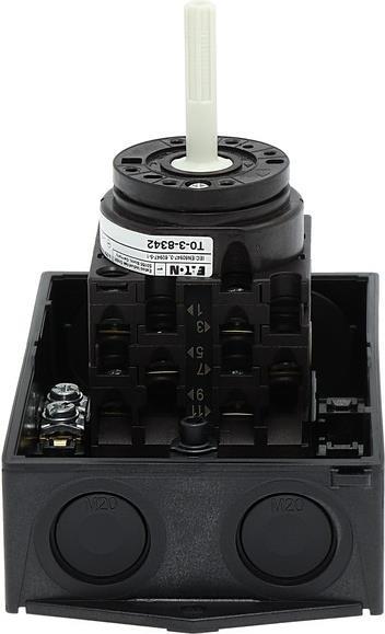 Hauptschalter AufbauTechnische Daten: Anschluss (Bauelemente): SchraubenAufdruck-Motiv: OFF/ONAusführung: Hauptschalter AufbauBetätigungsart: Not-Aus DrehschalterFarbe Gehäuse/Knopf: Gelb, RotFunktionen (Schalter/Taster): rastendGewinde-Maß: M3.5Inhalt: 1 St.Leistung: 6.5 kWMontageart: AufbauPolzahl: 6Produktabmessung, Breite: 80 mmProduktabmessung, Höhe: 137 mmProduktabmessung, Tiefe: 95 mmSchalter/Taster-Art (Kategorisierung): NockenschalterSchaltspannung: 690 VSchaltstrom (max.): 20 ASchaltwinkel: 1 x 90 °Schutzart: IP65Temperatur (max.): +50 °CTemperatur (min.): -25 °CTyp (Hersteller-Typ): T0-3-8342/I1/SVB