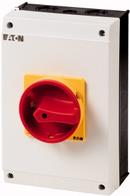 Hauptschalter AufbauTechnische Daten: Anschluss (Bauelemente): SchraubenAufdruck-Motiv: OFF/ONAusführung: Hauptschalter AufbauBetätigungsart: Not-Aus DrehschalterFarbe Gehäuse/Knopf: Gelb, RotFunktionen (Schalter/Taster): rastendGewinde-Maß: M6Inhalt: 1 St.Leistung: 22 kWMontageart: AufbauPolzahl: 6Produktabmessung, Breite: 160 mmProduktabmessung, Höhe: 240 mmProduktabmessung, Tiefe: 160 mmSchalter/Taster-Art (Kategorisierung): NockenschalterSchaltspannung: 690 VSchaltstrom (max.): 63 ASchaltwinkel: 1 x 90 °Schutzart: IP65Temperatur (max.): +50 °CTemperatur (min.): -25 °CTyp (Hersteller-Typ): T5B-4-15682/I4/SVB