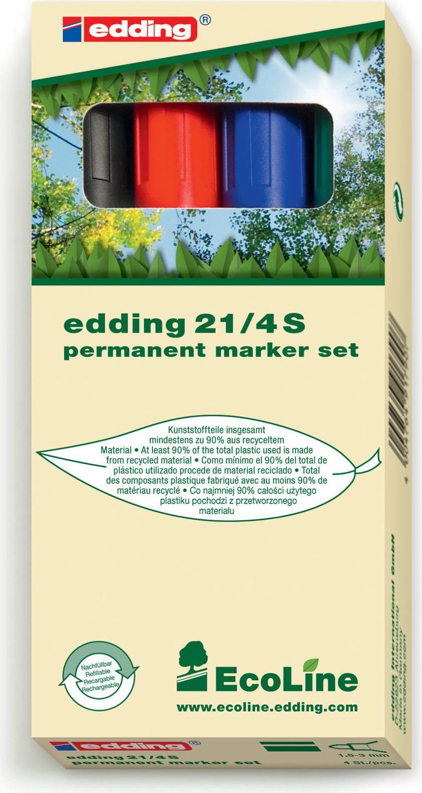 Edding EcoLine 21 - Schwarz - Blau - Grün - Rot - Mehrfarben - Kunststoff (4-21-4)
