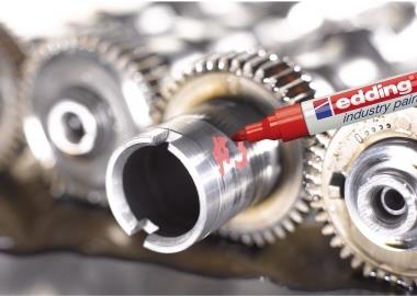 Industrie Lackmarker zum hochpermanenten Markieren von leicht öligen, staubigen und dunklen Oberflächen. Die Rundspitze hat eine Strichbreite von 2-4 mm. Die hochpermanente Tinte des Industrie Lackmarkers ist lichtbeständig, schnelltrocknend, stark deckend sowie wasserfest, salzwasser- und abriebbeständig.
