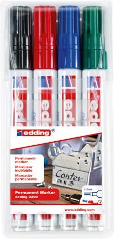 Edding 3300 Meißel Schwarz - Blau - Grün - Rot 4Stück(e) Permanent-Marker (4-3300-4S)