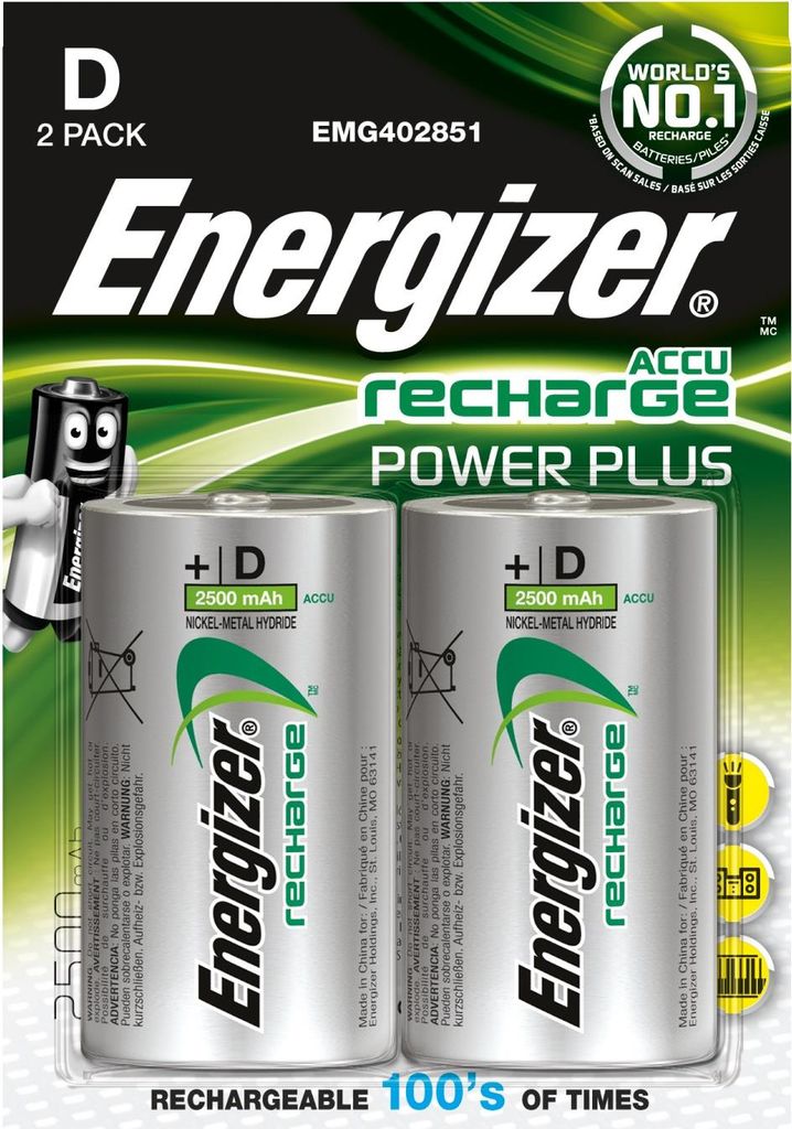 Energizer Accu Recharge Power Plus - Batterie 2 x D - NiMH - (wiederaufladbar) - 2500 mAh