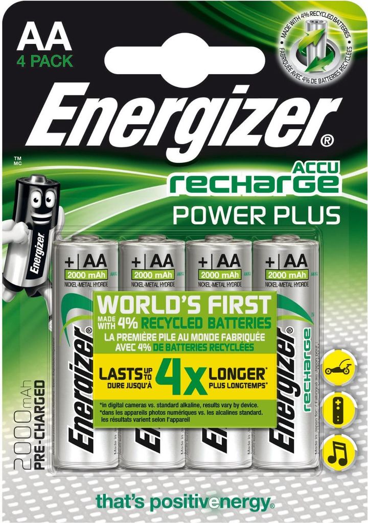 Energizer Accu Recharge Power Plus 2000 AA BP4 Nickel Metall-Hydrid 2000mAh 1.2V (E300626700)