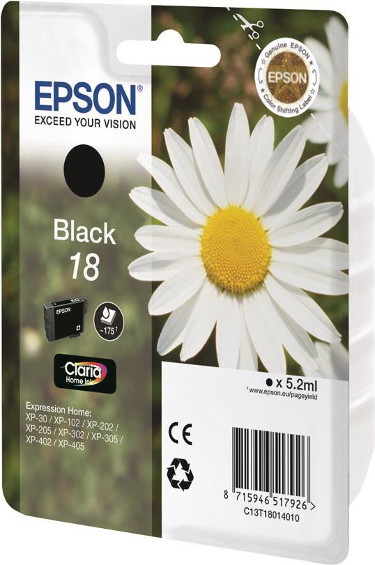 Epson 18 - Schwarz - Original - Tintenpatrone - für Expression Home XP-212, 215, 225, 312, 315, 322, 325, 412, 415, 422, 425 (C13T18014010)
