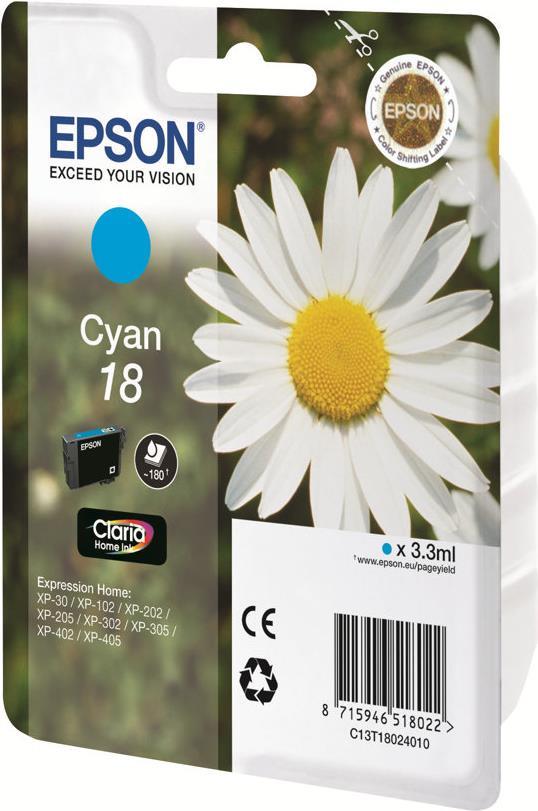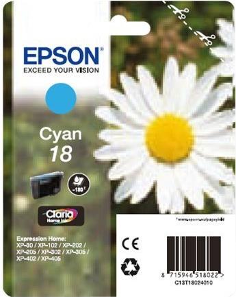 Epson 18 - Cyan - original - Tintenpatrone - für Expression Home XP-212, 215, 225, 312, 315, 322, 325, 412, 415, 422, 425 (C13T18024010)