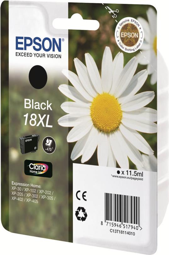 Epson 18XL - Schwarz - Original - Tintenpatrone - für Expression Home XP-212, 215, 225, 312, 315, 322, 325, 412, 415, 422, 425 (C13T18114010)
