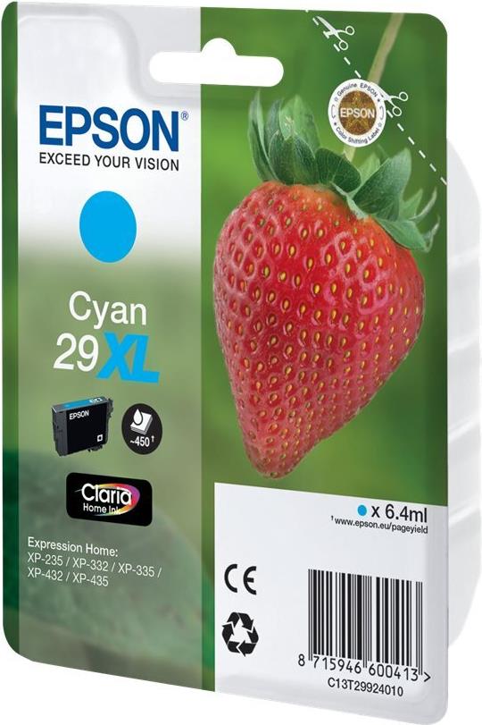 Epson 29XL - 6,4 ml - XL - Cyan - original - Tintenpatrone - für Expression Home XP-235, 245, 247, 332, 335, 342, 345, 432, 435, 442, 445 (C13T29924010)