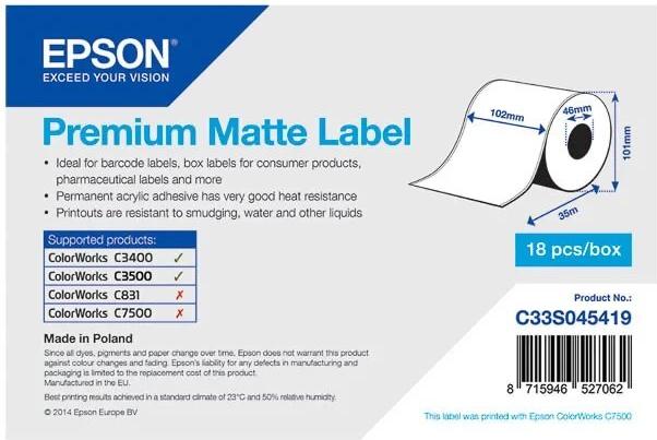 Epson Premium - Mattes Etiketten-Endlospapier - Rolle (10,2 cm x 35 m) 1 Rolle(n) - für Epson TM-C3400-LT; TM C3500 (C33S045419)