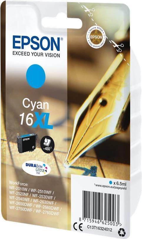 Epson 16XL - 6.5 ml - XL - Cyan - original - Blisterverpackung - Tintenpatrone - für WorkForce WF-2010, 2510, 2520, 2530, 2540, 2630, 2650, 2660, 2750, 2760