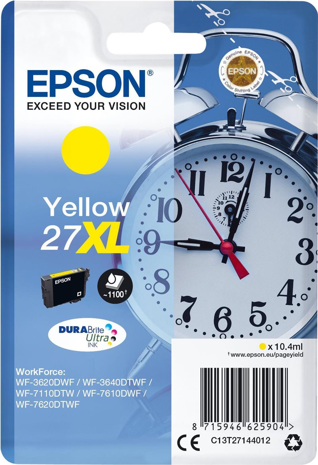 Epson 27XL - 10,4 ml - Größe XL - Gelb - Original - Tintenpatrone - für WorkForce WF-3620DWF, WF-3640DTWF, WF-7110DTW, WF-7610DWF, WF-7620DTWF (C13T27144012)