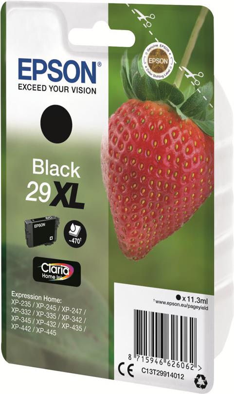 Epson 29XL - 11,3 ml - XL - Schwarz - original - Blister mit RF- / akustischem Alarmsignal - Tintenpatrone - für Expression Home XP-235, 245, 247, 255, 332, 335, 342, 345, 432, 435, 442, 445, 455 (C13T29914022)
