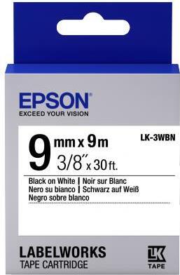 Epson LabelWorks LK-3WBN - Etikettenband - Schwarz auf Weiß - Rolle (0,9 cm x 9 m) 1 Rolle(n) - für LabelWorks LW-1000P, LW-300, LW-300L, LW-400, LW-400L, LW-400VP, LW-600P, LW-700, LW-900P (C53S653003)