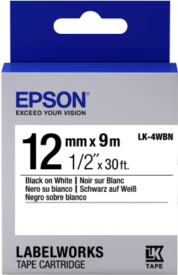 Epson LabelWorks LK-4WBN - Etikettenband - Schwarz auf Weiß - Rolle (1,2 cm x 9 m) 1 Rolle(n) - für LabelWorks LW-1000P, LW-300, LW-300L, LW-400, LW-400L, LW-400VP, LW-600P, LW-700, LW-900P (C53S654021)