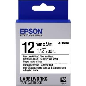Epson LabelWorks LK-4WBW - Stark klebend - Schwarz auf Weiß - Rolle (1,2 cm x 9 m) 1 Kassette(n) Etikettenband - für LabelWorks LW-1000, 300, 400, 600, 700, 900, K400, Z5000, Z5010, Z700, Z710, Z900 (C53S654016)