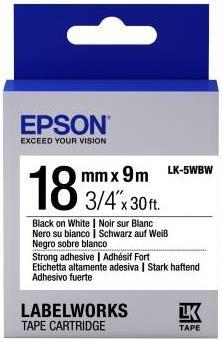 Epson LabelWorks LK-5WBW - Stark klebend - Schwarz auf Weiß - Rolle (1,8 cm x 9 m) 1 Kassette(n) Etikettenband - für LabelWorks LW-1000, 400, 600, 700, 900, K400, Z5000, Z5010, Z700, Z710, Z900 (C53S655012)